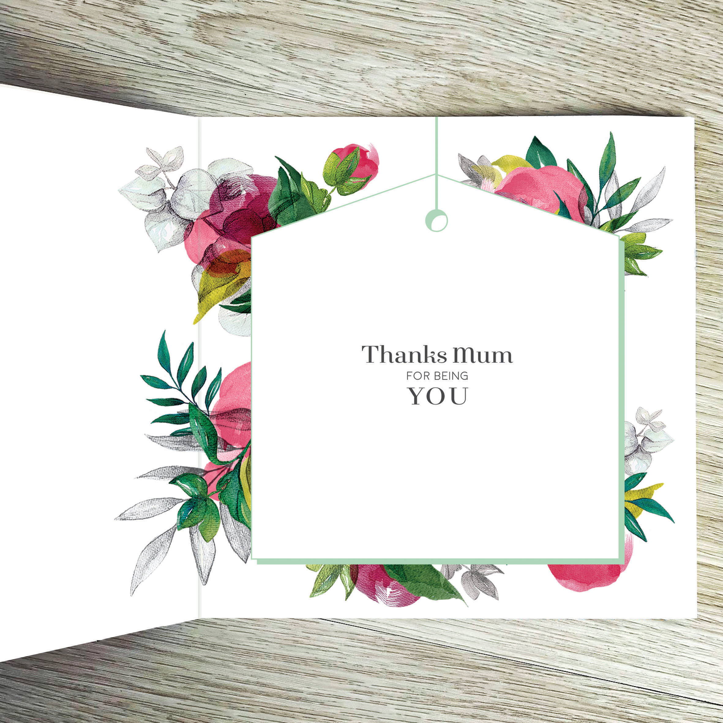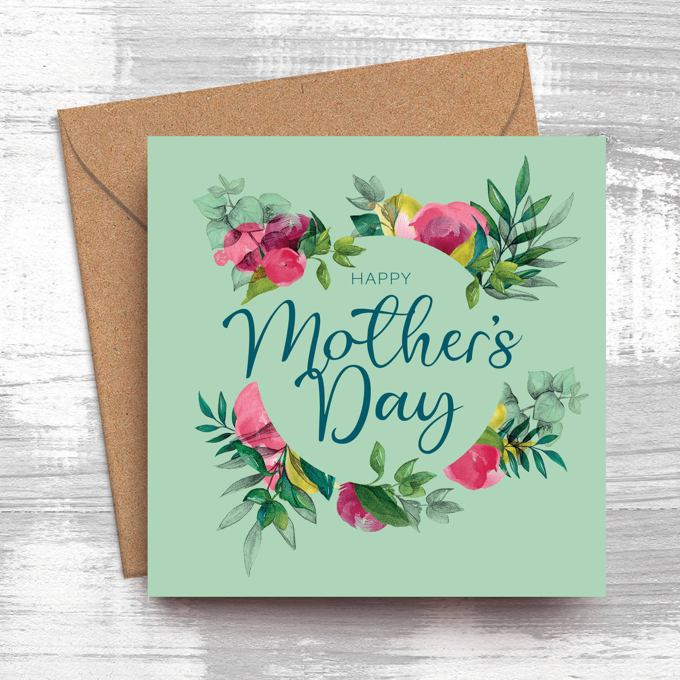 Show Mum how much you care and send something beautiful to celebrate her special day. One of three botanical style Mother’s Day cards, this Peony Garland design has a more refined layout of peony clusters and foliage. It is printed from an original watercolour illustration. A blooming illustration can be discovered on the inside too.